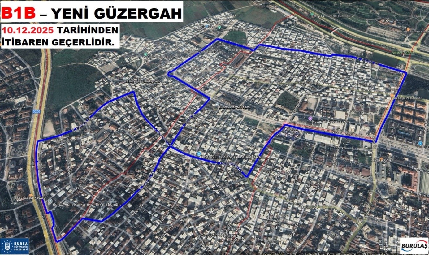 B1B Hattında güzergâh değişikliği, 10.12.2025 tarihinden itibaren geçerlidir.
