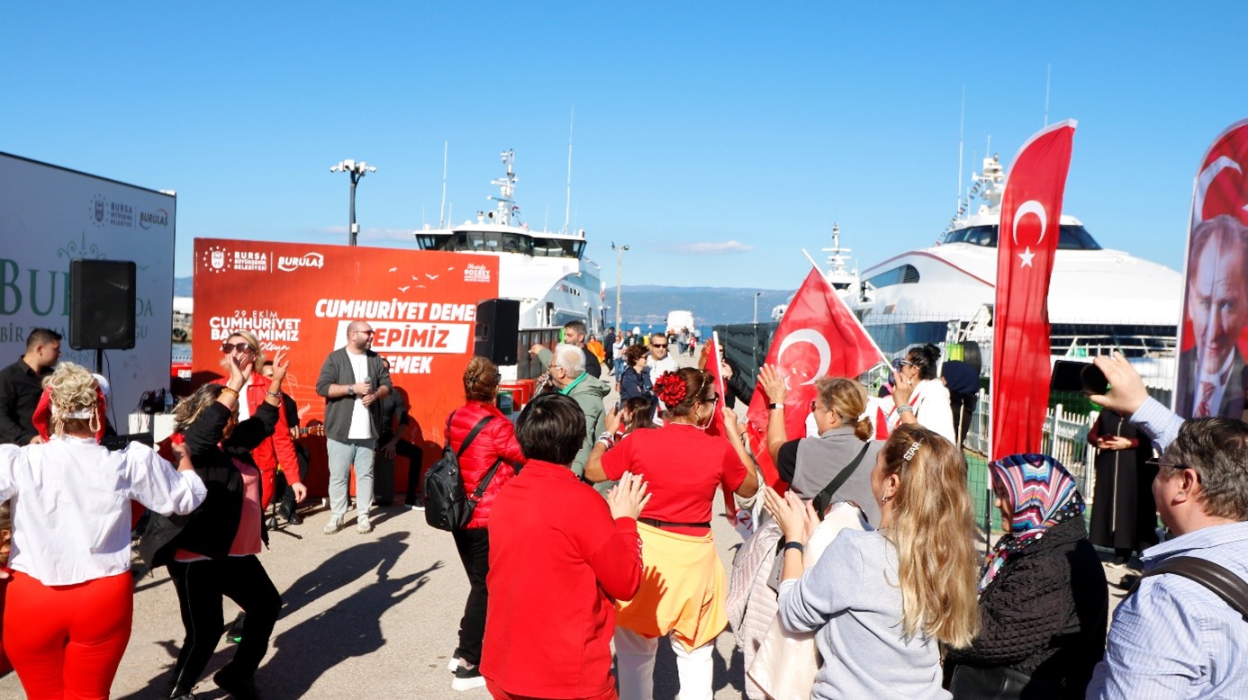 Bursa Büyükşehir Belediyesi iştiraklerinden BURULAŞ, Cumhuriyetimizin 102. yıl dönümünü kent genelinde büyük bir coşkuyla kutladı. 29 Ekim Cumhuriyet Bayramı dolayısıyla düzenlenen etkinlikler kapsamında, Şehreküstü İstasyonu, Odunluk İstasyonu ve BUDO İskele Alanı’nda gerçekleştirilen müzik dinletileriyle vatandaşlara keyifli anlar yaşatıldı.