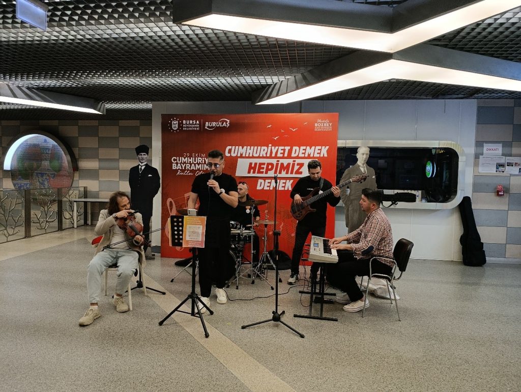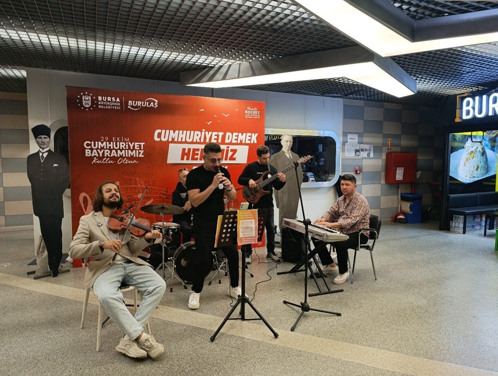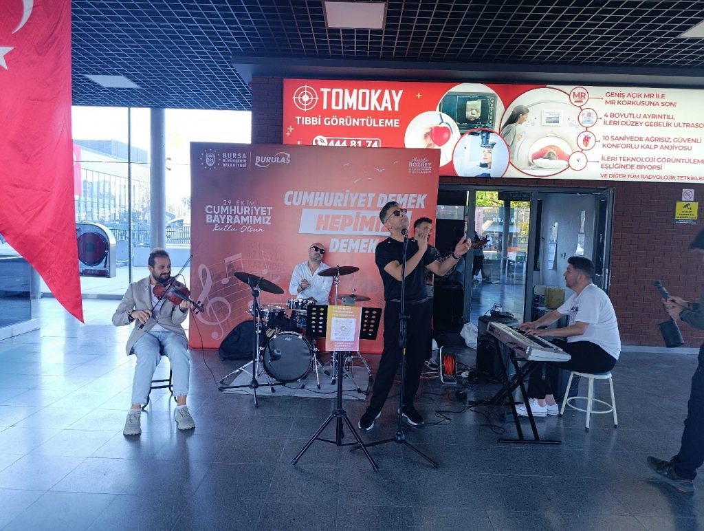 Bursa Büyükşehir Belediyesi iştiraklerinden BURULAŞ, Cumhuriyetimizin 102. yıl dönümünü kent genelinde büyük bir coşkuyla kutladı. 29 Ekim Cumhuriyet Bayramı dolayısıyla düzenlenen etkinlikler kapsamında, Şehreküstü İstasyonu, Odunluk İstasyonu ve BUDO İskele Alanı’nda gerçekleştirilen müzik dinletileriyle vatandaşlara keyifli anlar yaşatıldı.