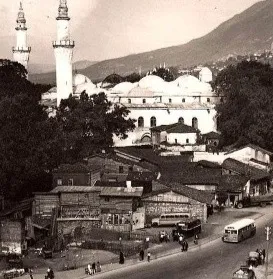 Çakır Hamamı ve Ulu Camii’nin bulunduğu bölgede çekilen bir fotoğraf. Dönemin tarihi yapıları ve çevresindeki yaşamın izlerini taşıyan bu kare hem kültürel mirası hem de o dönemdeki şehir yapısını gözler önüne sermektedir.